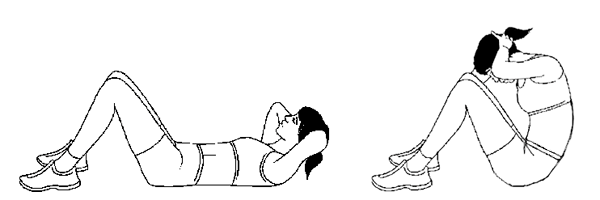 Участница выполняет максимальное количество подниманий туловища за 1 мин, касаясь локтями бедер (коленей), с последующим возвращением в ИП.